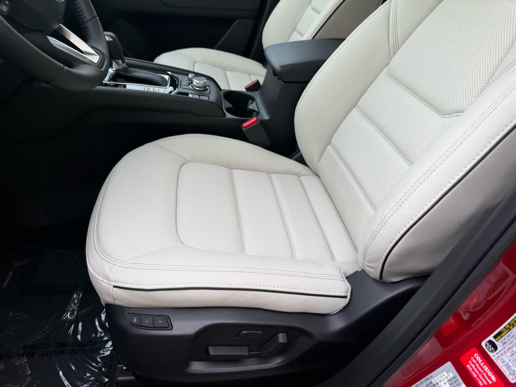 Leather Seats, Sunroof, Power Liftgate, Heated Driver Seat, Back-Up Camera, iPod/MP3 Input, Onboard Communications System, Aluminum Wheels, Keyless Start, Dual Zone A/C. Rear Spoiler, MP3 Player, Remote Trunk Release, Keyless Entry. Mazda CX-5 2.5 S Preferred Package with Soul Red Crystal Metallic exterior and Parchment interior features a 4 Cylinder Engine with 187 HP at 6000 RPM*.