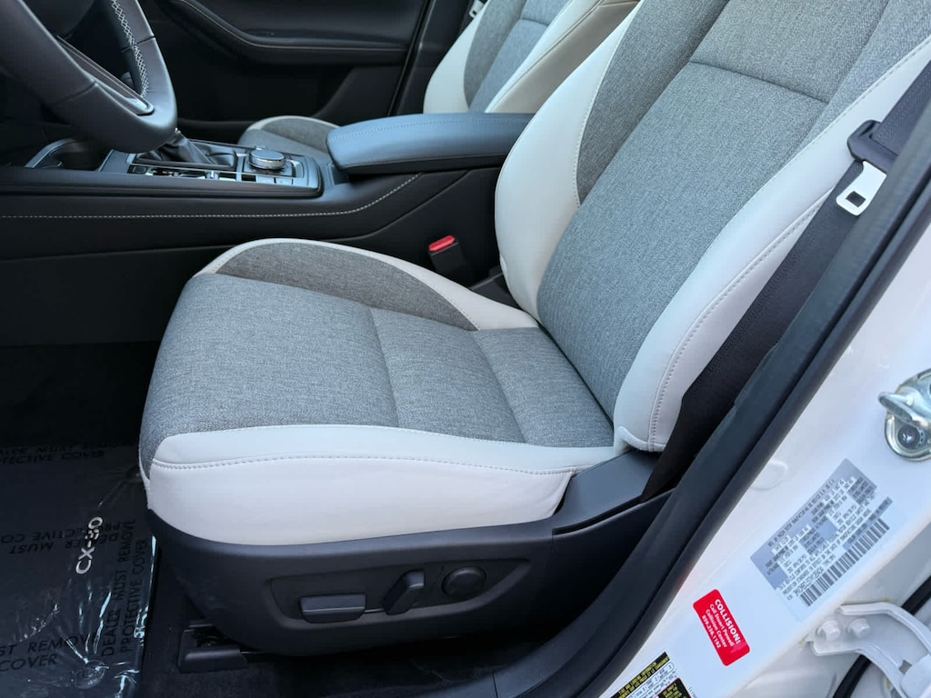 Sunroof, Heated Seats, WiFi Hotspot, Brake Actuated Limited Slip Differential, Dual Zone A/C, Onboard Communications System, iPod/MP3 Input, AWD. CX-30 2.5 S Aire Edition trim, Snowflake White Pearl Mica exterior and White interior.