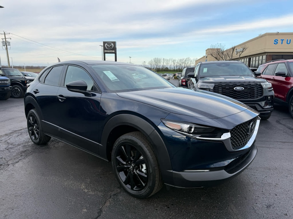 Heated Seats, Apple CarPlay®, WiFi Hotspot, Brake Actuated Limited Slip Differential, Keyless Start, Onboard Communications System, iPod/MP3 Input, AWD. CX-30 2.5 S Select Sport trim, Deep Crystal Blue Mica exterior and Black interior.