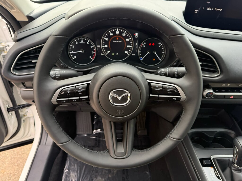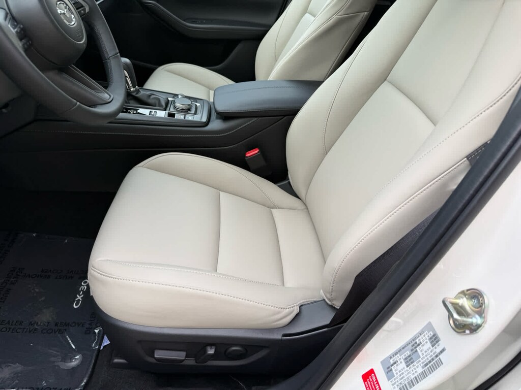 Moonroof, Heated Seats, WiFi Hotspot, Brake Actuated Limited Slip Differential, Dual Zone A/C, Onboard Communications System, iPod/MP3 Input, AWD. CX-30 2.5 S Preferred trim, Snowflake White Pearl Mica exterior and Greige interior.