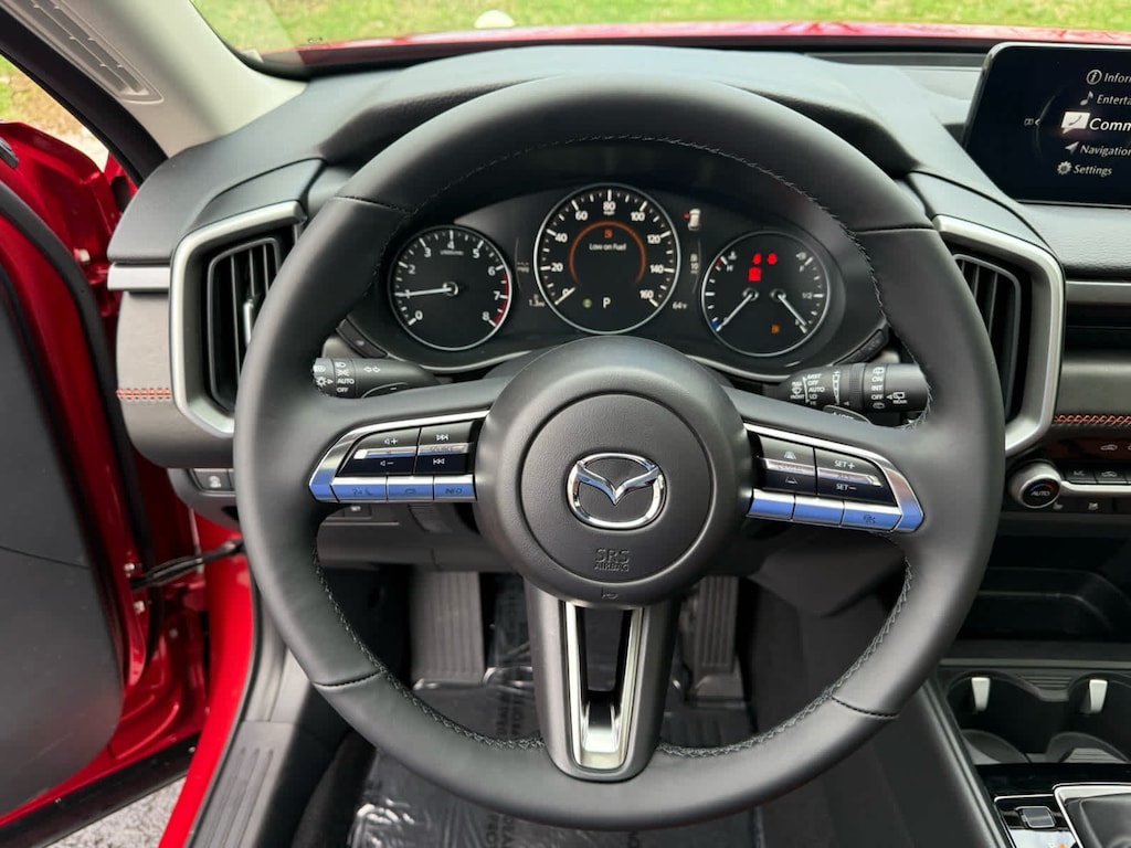 Sunroof, Heated/Cooled Leather Seats, iPod/MP3 Input, Satellite Radio, Premium Sound System, Power Liftgate, Panoramic Roof, AWD, Alloy Wheels. Soul Red Crystal Metallic exterior and Terracotta interior, CX-50 2.5 Turbo trim.