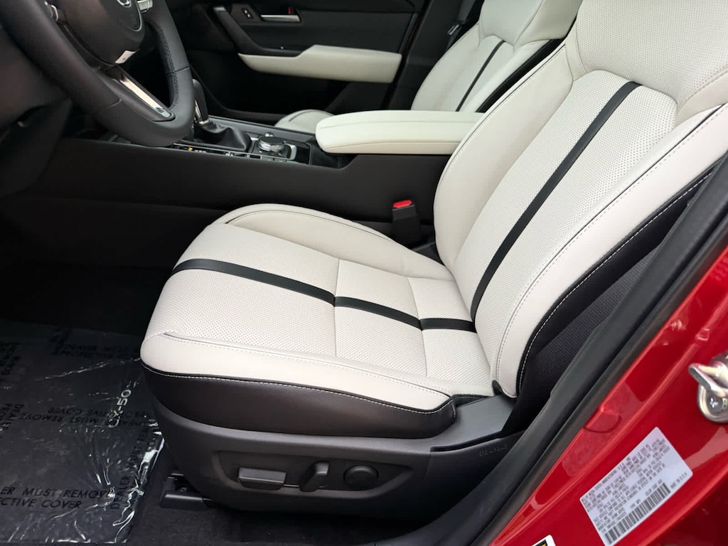 Moonroof, Heated/Cooled Leather Seats, iPod/MP3 Input, Satellite Radio, Premium Sound System, Power Liftgate, Panoramic Roof, AWD, Aluminum Wheels. Soul Red Crystal Metallic exterior and White interior, CX-50 2.5 S Premium trim.