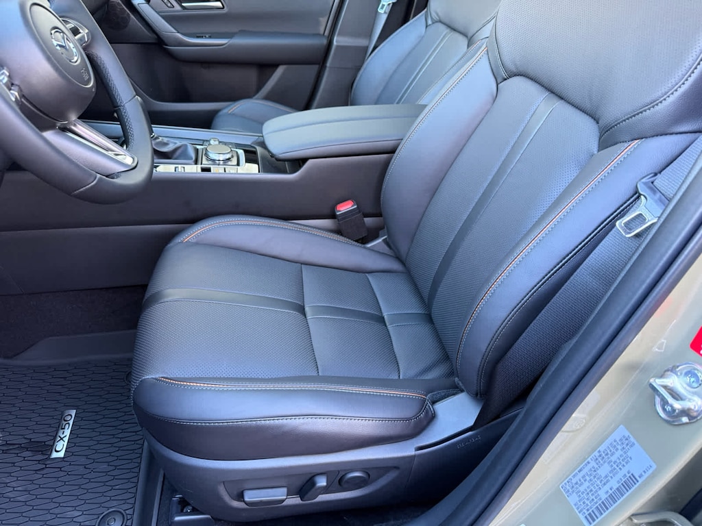 Moonroof, Heated/Cooled Leather Seats, iPod/MP3 Input, Satellite Radio, Premium Sound System, Power Liftgate, Panoramic Roof, AWD, Aluminum Wheels, WEATHER PACKAGE. Zircon Sand Metallic exterior and Black interior, CX-50 2.5 Turbo trim