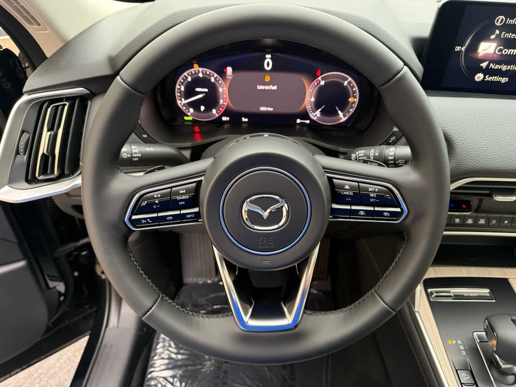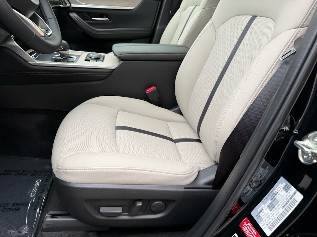 Leather Seats, Third Row Seat, Navigation, Sunroof, Panoramic Roof, Power Liftgate, Rear Air, Heated Driver Seat, Heated Rear Seat, Cooled Driver Seat. Rear Spoiler, MP3 Player, Remote Trunk Release, Privacy Glass. Mazda CX-90 Premium Sport with Jet Black Mica exterior and Greige interior features a Straight 6 Cylinder Engine with 280 HP at 5000 RPM*.