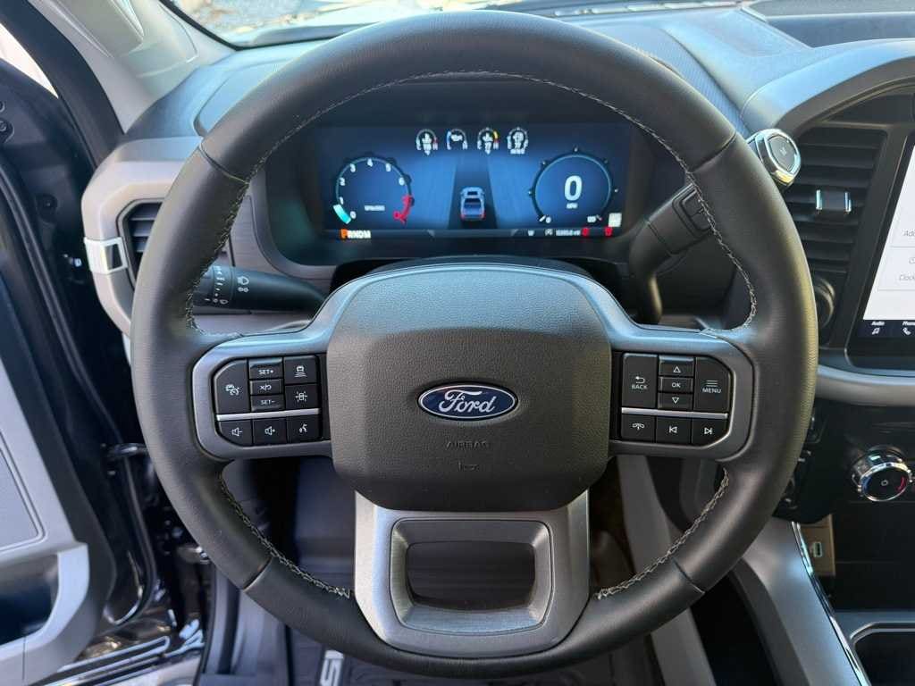 EQUIPMENT GROUP 302A MID Adaptive Cruise Control w/Stop & Go, lane centering, Speed Sign Recognition, Intelligent Access w/Push Button Start, approach detection, 400W Cab & Bed Outlets, Ford BlueCruise Equipped (90-Day Trial), See ford.com/bluecruise for version details, Power-Sliding Rear Window, Remote Start System w/Remote Tailgate Release, Heated Front Seats, Power Glass Heated Sideview Mirrors, manual folding, turn signals, high-intensity LED security approach lamps, LED sideview mirror spotlights and chrome skull caps, Auto-Dimming Rearview Mirror, ENGINE: 5.0L V8 auto start-stop technology, 3.31 Axle Ratio, GVWR: 7,100 lbs Payload Package, BED UTILITY PACKAGE Tailgate Step w/Tailgate Work Surface, LED Box Lighting, 4 Pickup Box Tie-Down Plates, TOUGH BED SPRAY-IN BEDLINER, ELECTRONIC LOCKING W/3.73 AXLE RATIO, TRANSMISSION: ELECTRONIC 10-SPEED AUTOMATIC SelectShift w/progressive range select and selectable drive modes: normal, ECO, sport, tow/haul, slippery, deep snow/sand and mud/rut (STD).